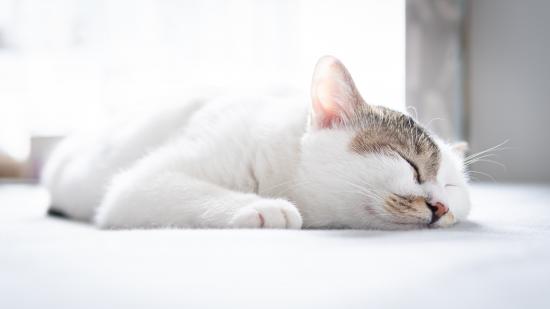 Wallpaper White domestic cat sleeping on the bed