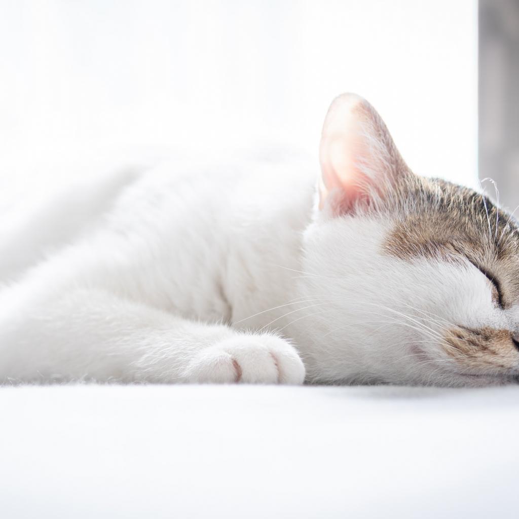 Wallpaper White domestic cat sleeping on the bed