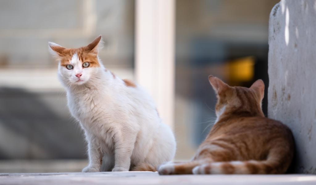 Wallpaper Scared blue-eyed cat with a ginger rival