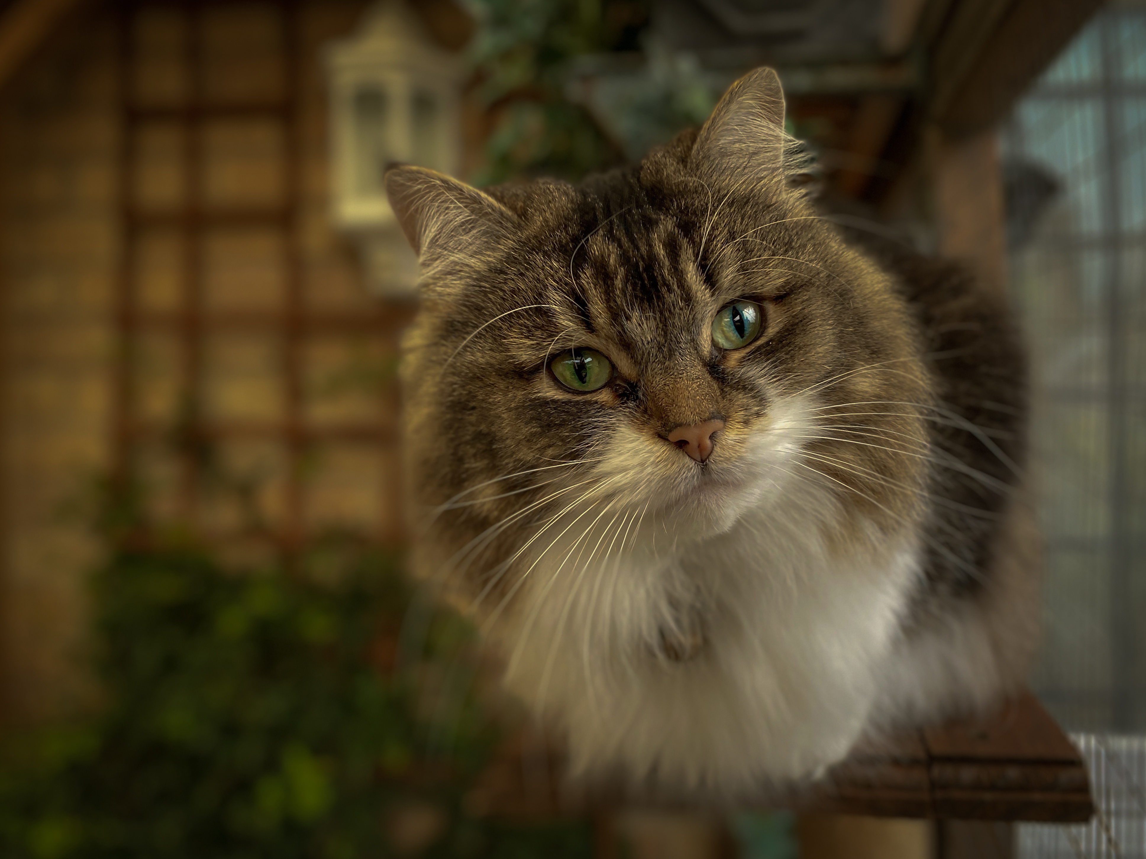 Wallpaper Beautiful fluffy green-eyed cat looking out the window