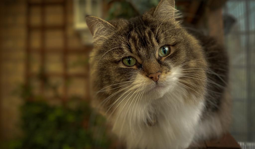 Wallpaper Beautiful fluffy green-eyed cat looking out the window