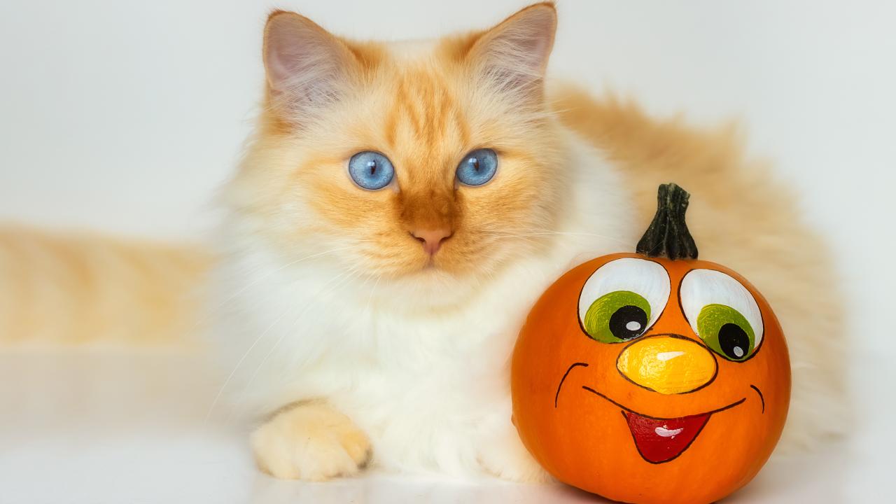 Wallpaper Beautiful blue-eyed ginger cat with a toy