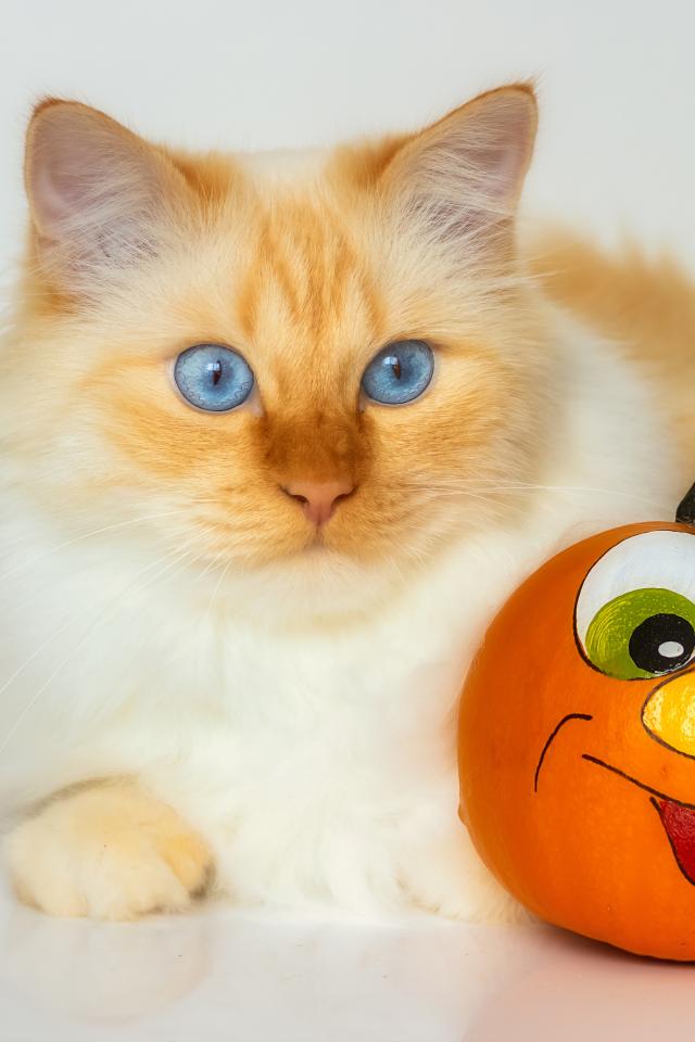 Wallpaper Beautiful blue-eyed ginger cat with a toy