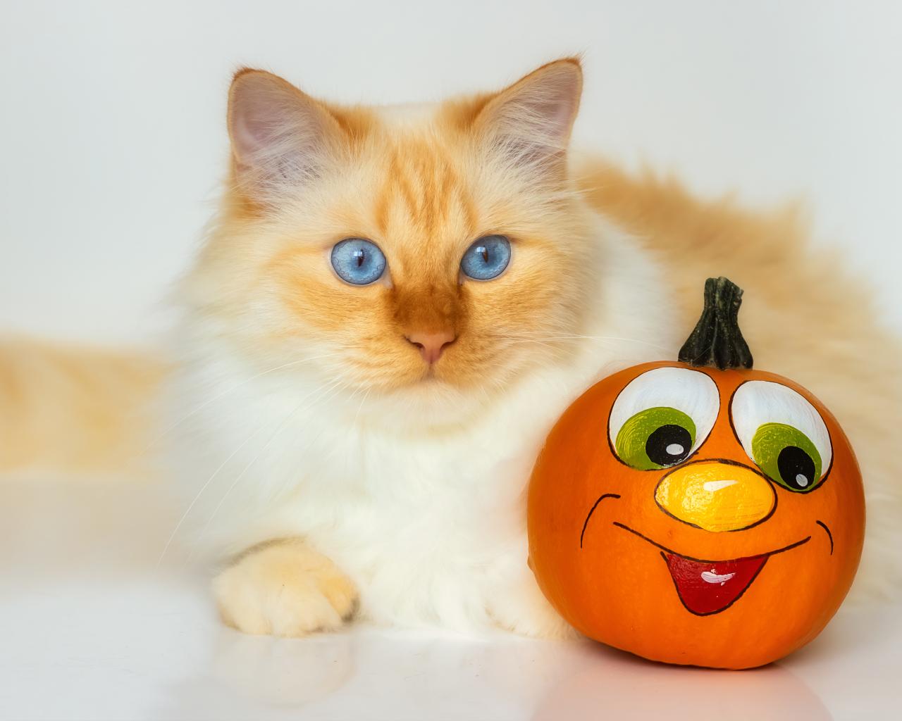 Wallpaper Beautiful blue-eyed ginger cat with a toy