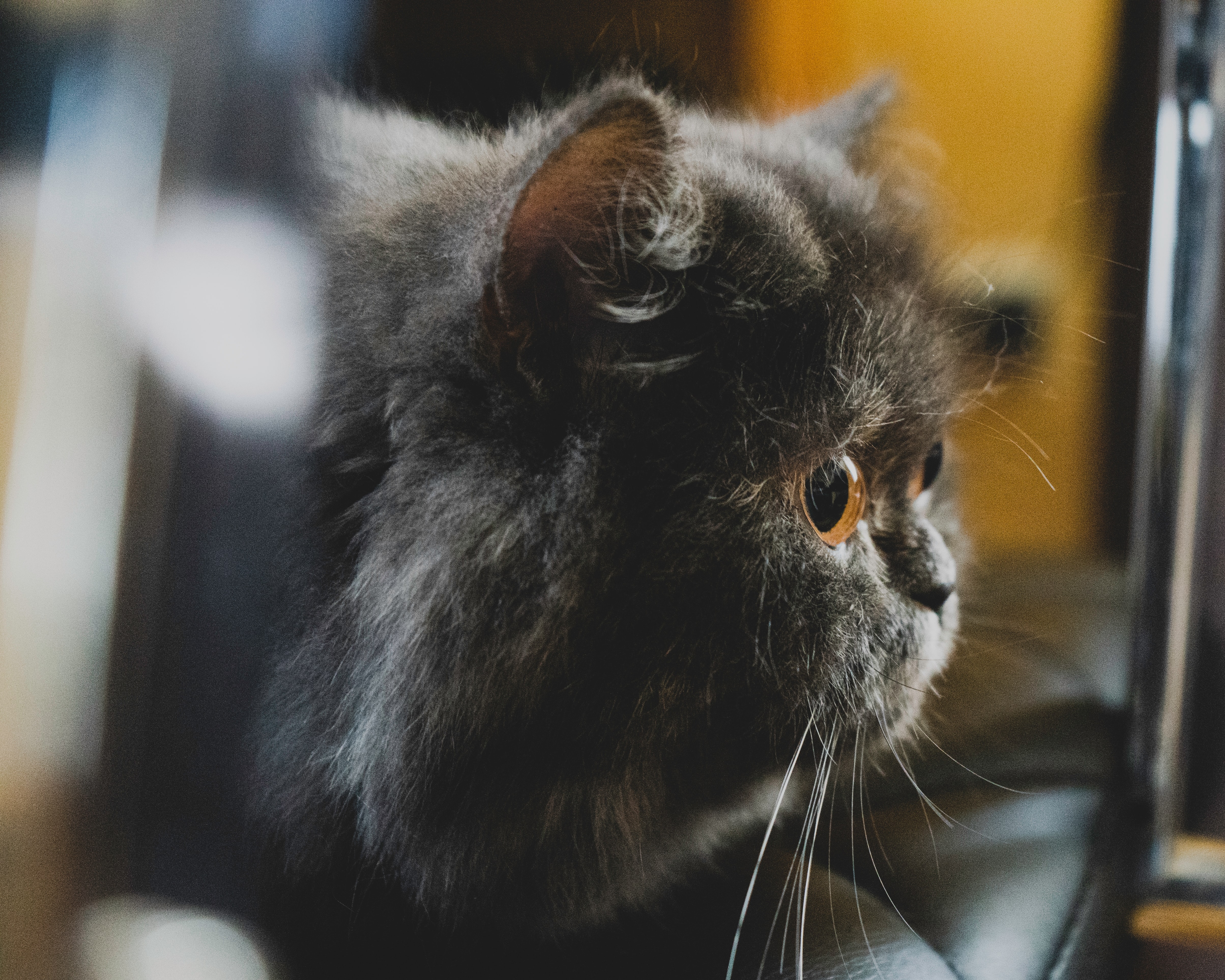 Wallpaper Fluffy gray cat with yellow eyes looks up