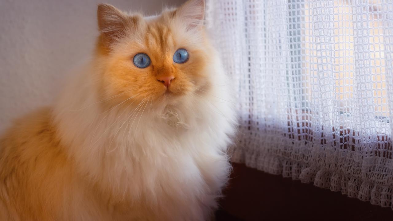 Wallpaper Fluffy blue-eyed cat sitting by the window