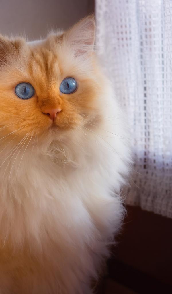 Wallpaper Fluffy blue-eyed cat sitting by the window