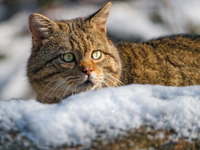 » Wallpaper A scared cat lies in the snow