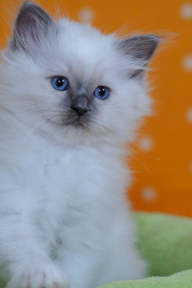 Wallpaper Small purebred kitten with blue eyes on a bed