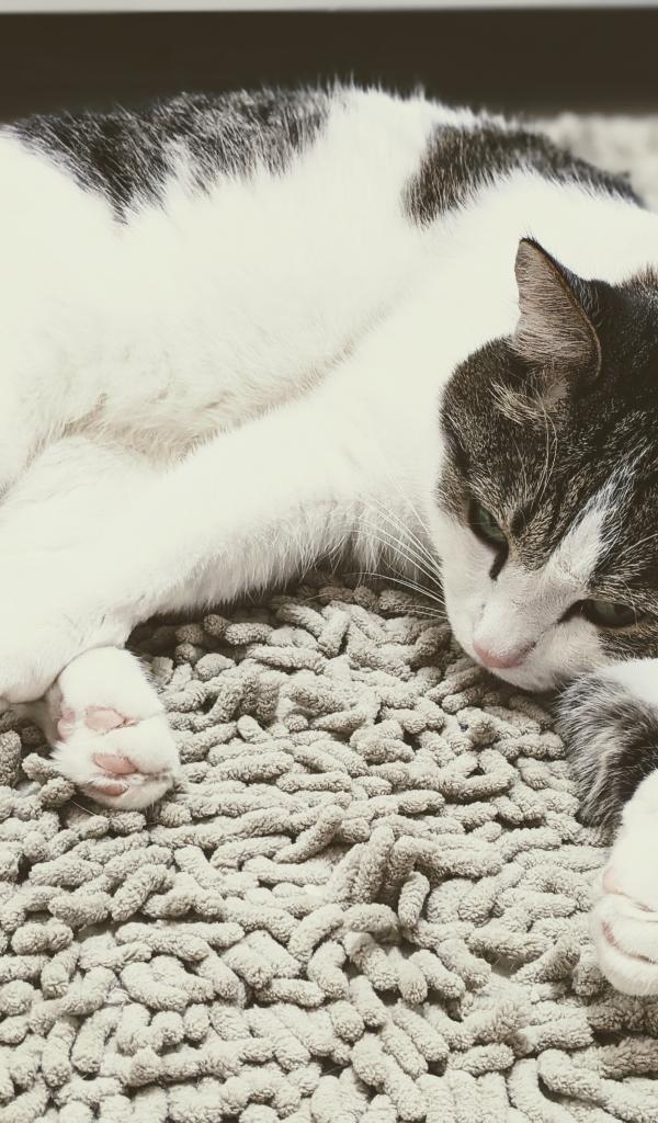 Wallpaper Beautiful blue-eyed purebred domestic cat lies on the floor