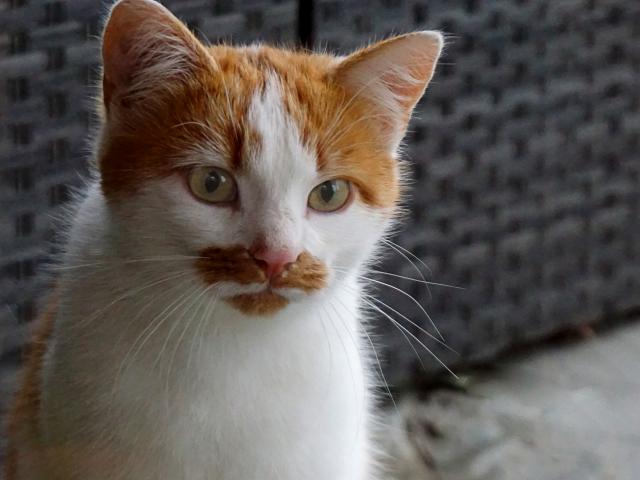 Wallpaper Red and white cat sitting on the couch