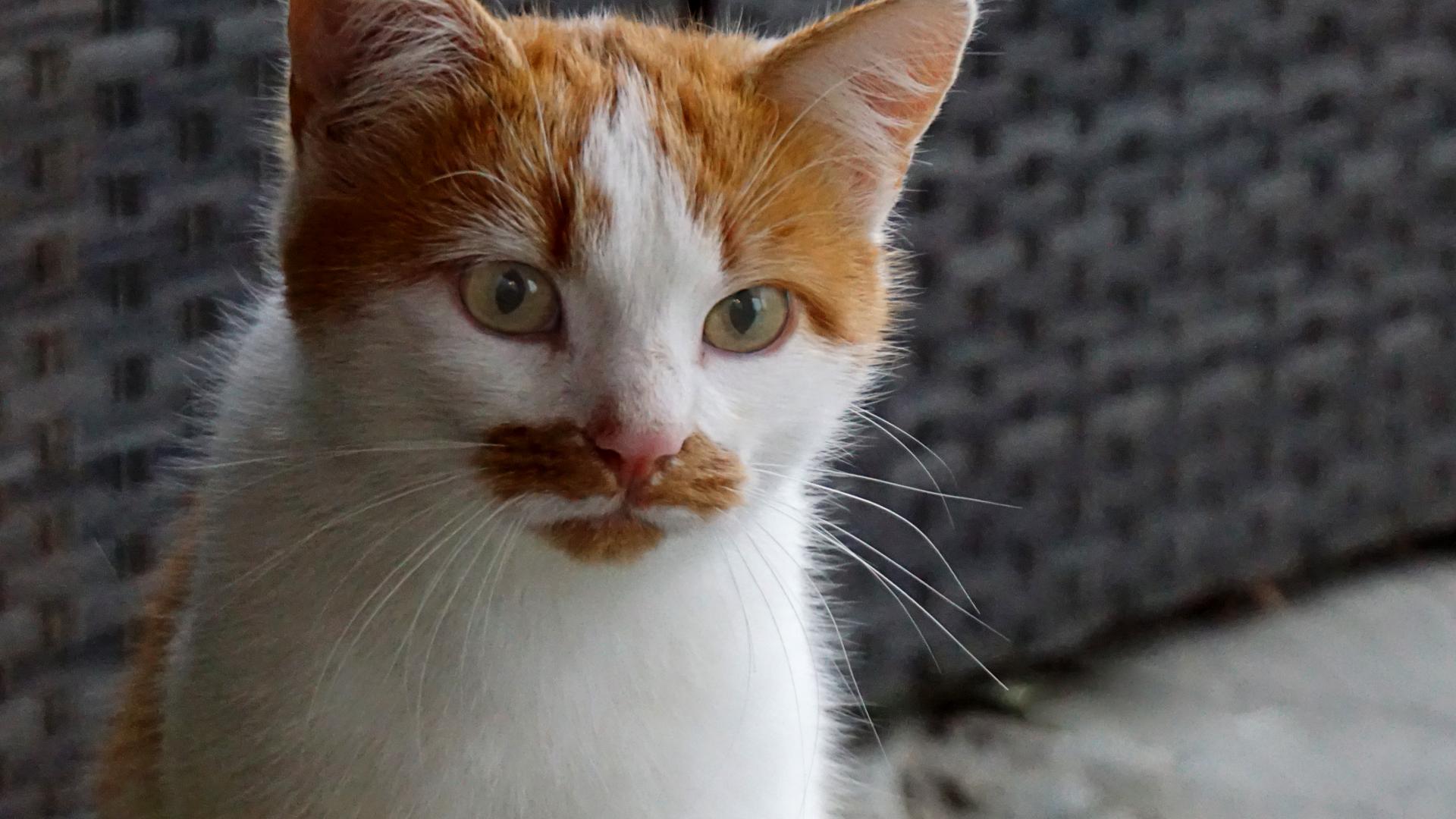 Wallpaper Red and white cat sitting on the couch