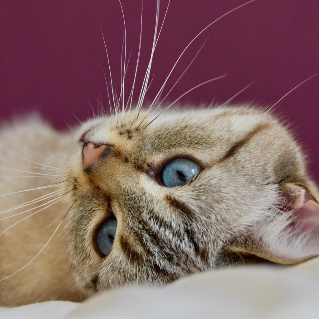 Wallpaper Beautiful blue-eyed cat lies on the bed