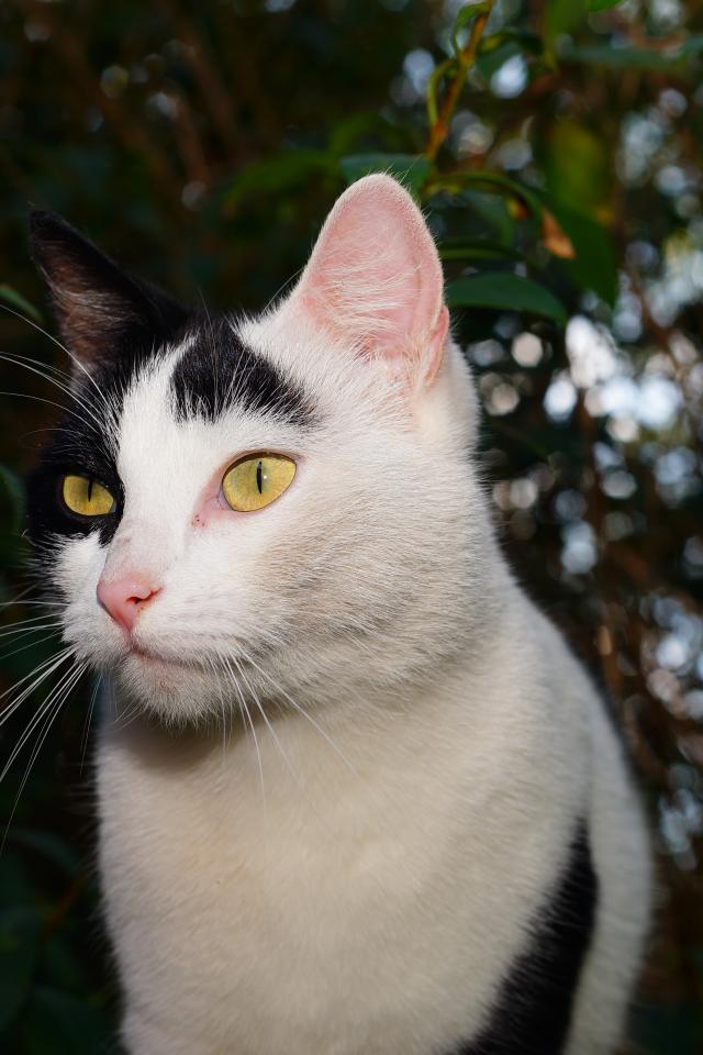 Wallpaper White with black spots cat in the garden