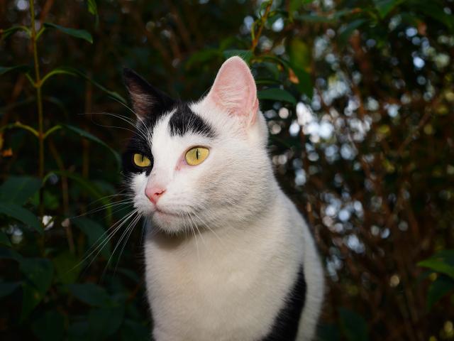 Wallpaper White with black spots cat in the garden