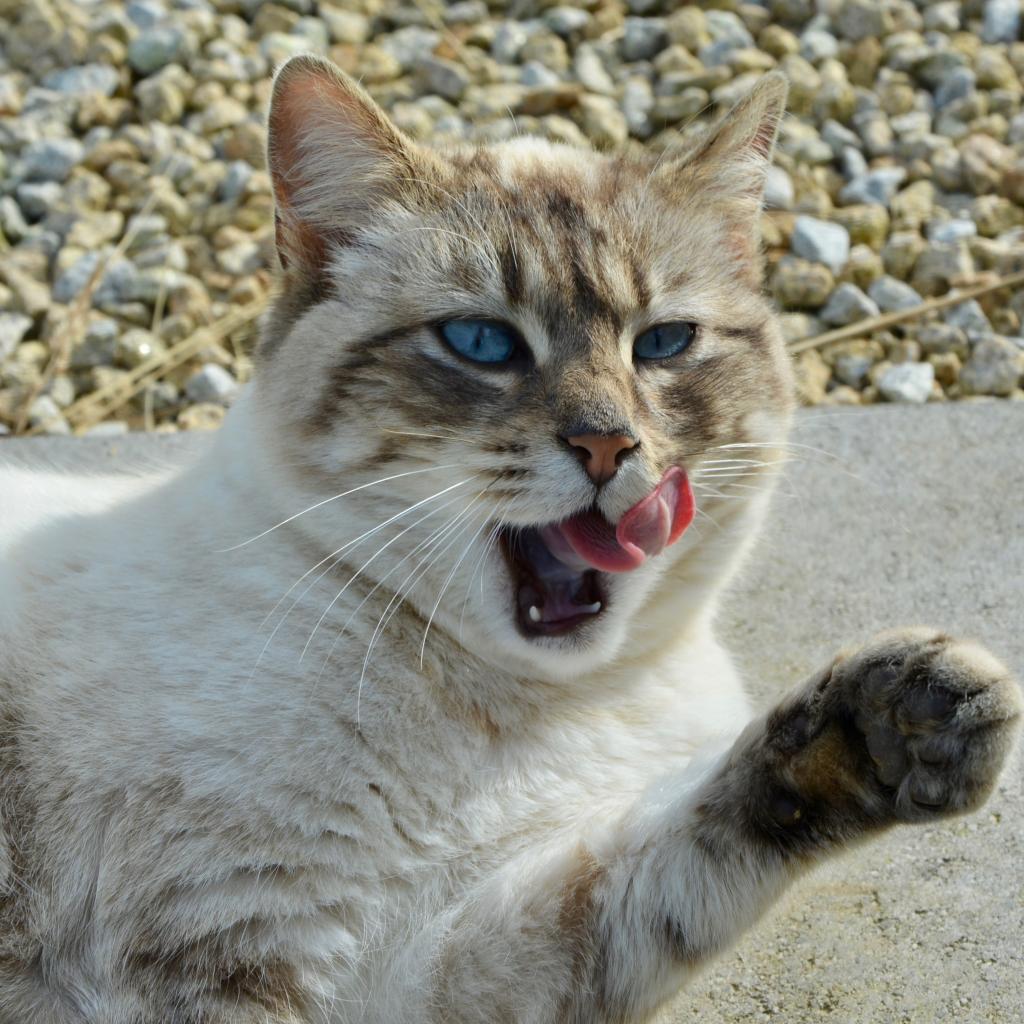 » Wallpaper Beautiful blue-eyed cat licks its lips