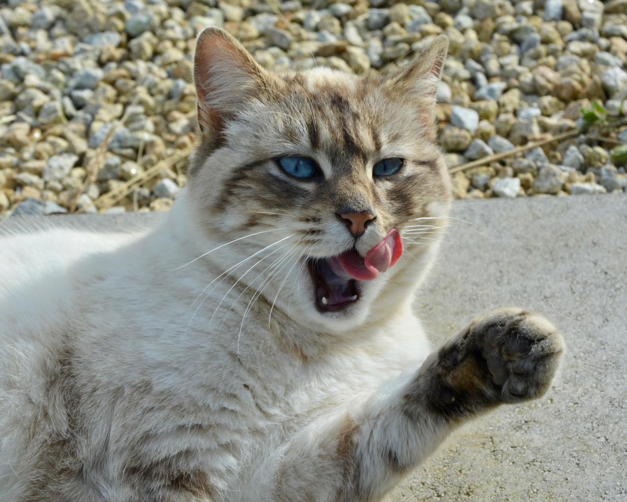 » Wallpaper Beautiful blue-eyed cat licks its lips