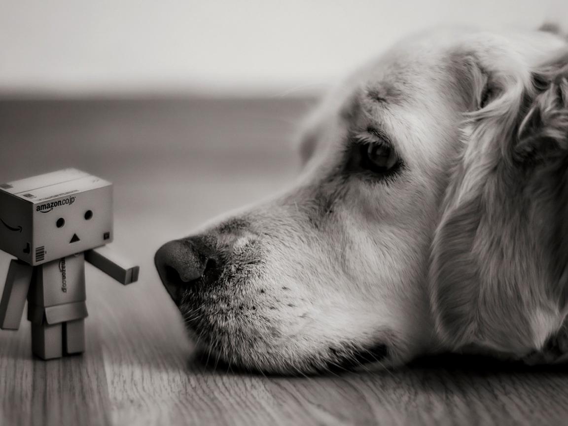 Wallpaper Man of cardboard from the dog`s nose