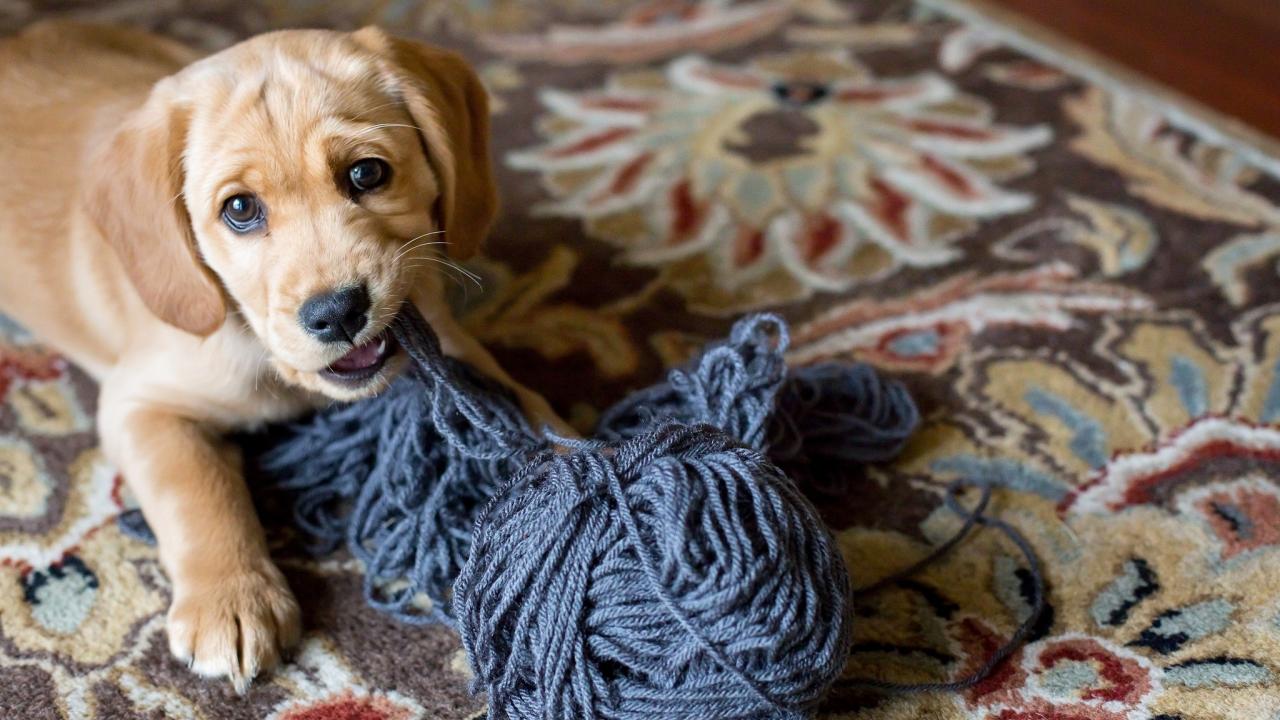 Wallpaper Little puppy gnaws thread