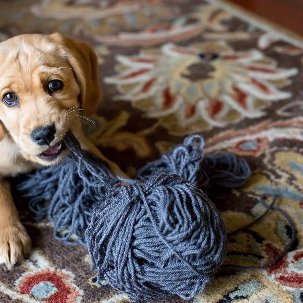 Wallpaper Little puppy gnaws thread