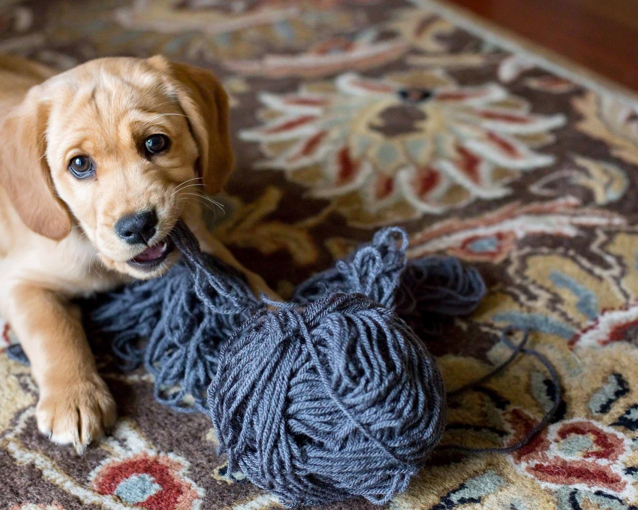 Wallpaper Little puppy gnaws thread
