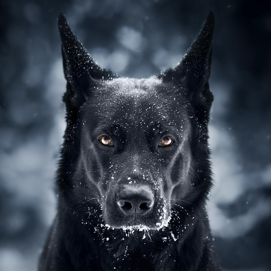 Wallpaper A big black dog with a snout in the snow