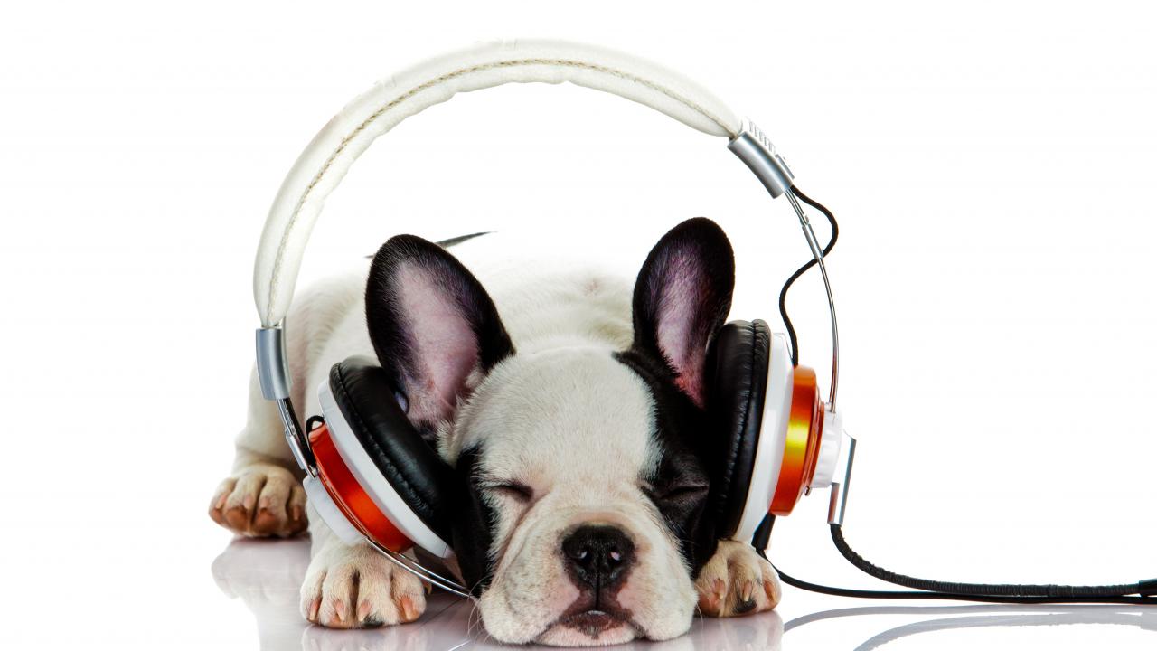 Wallpaper Puppy of the French bulldog with headphones