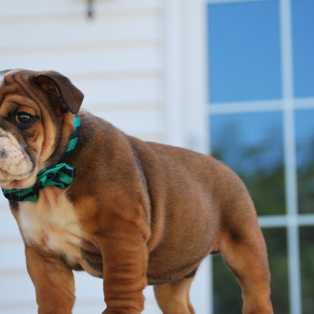 Wallpaper Little english bulldog puppy on the doorstep