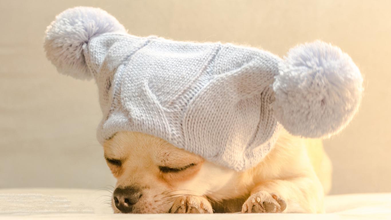 » Wallpaper Chihuahua dog sleeps in a white hat