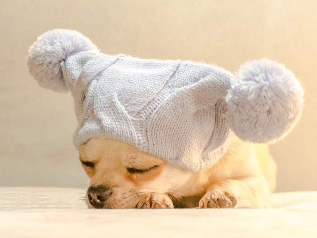 » Wallpaper Chihuahua dog sleeps in a white hat
