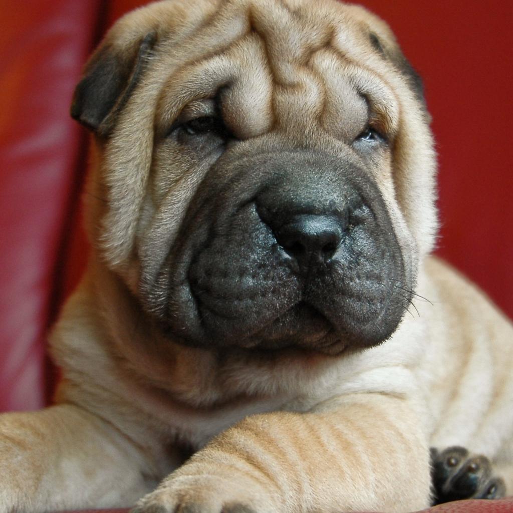 Wallpaper Puppy shar pei on a red background
