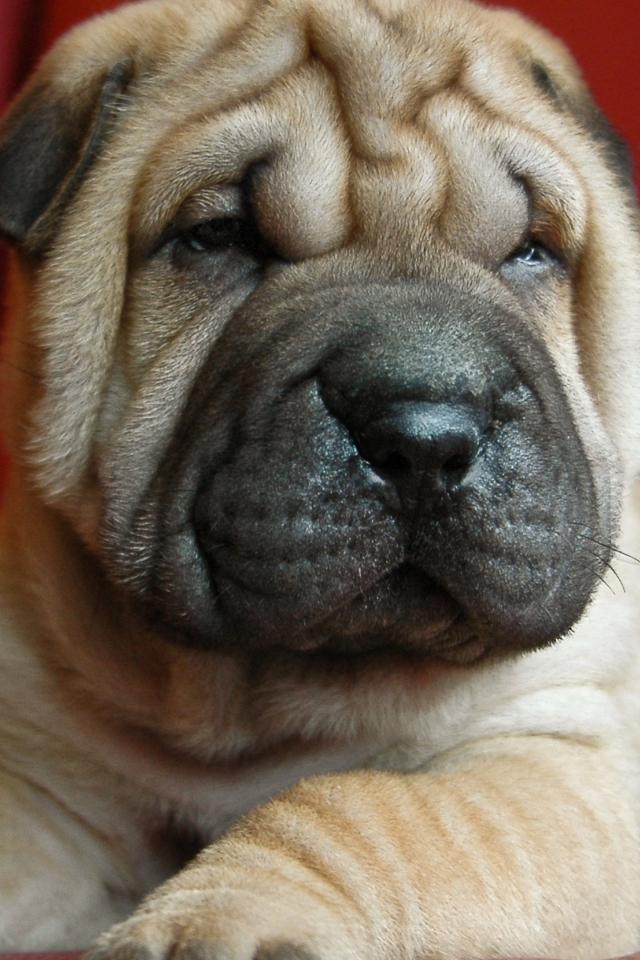 Wallpaper Puppy shar pei on a red background