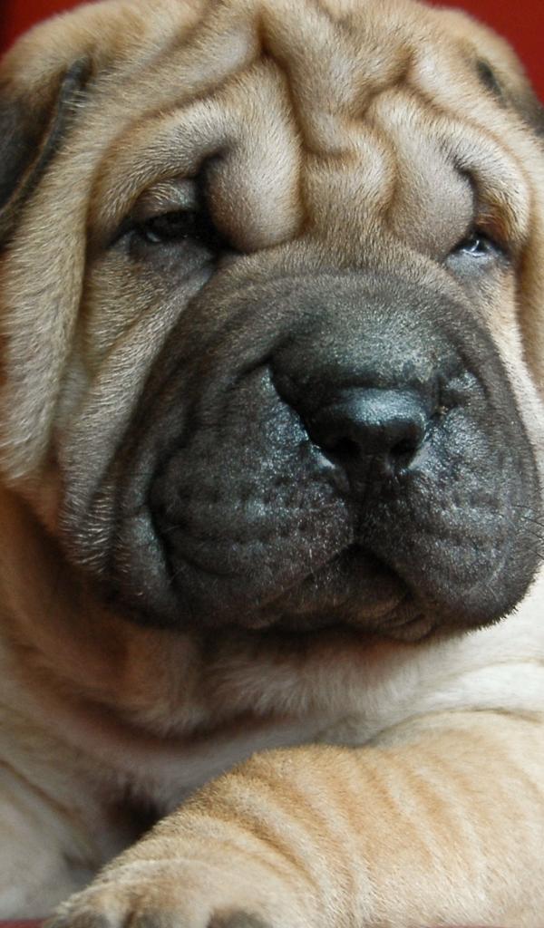 Wallpaper Puppy shar pei on a red background
