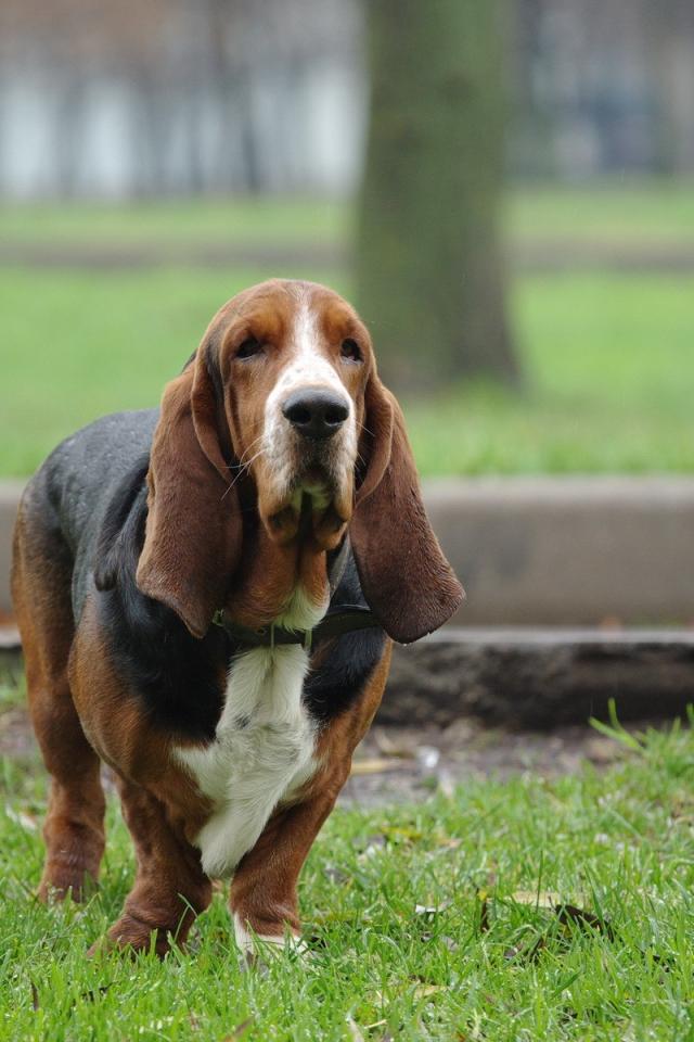 Wallpaper Sad dog breed Basset Hound on the green grass