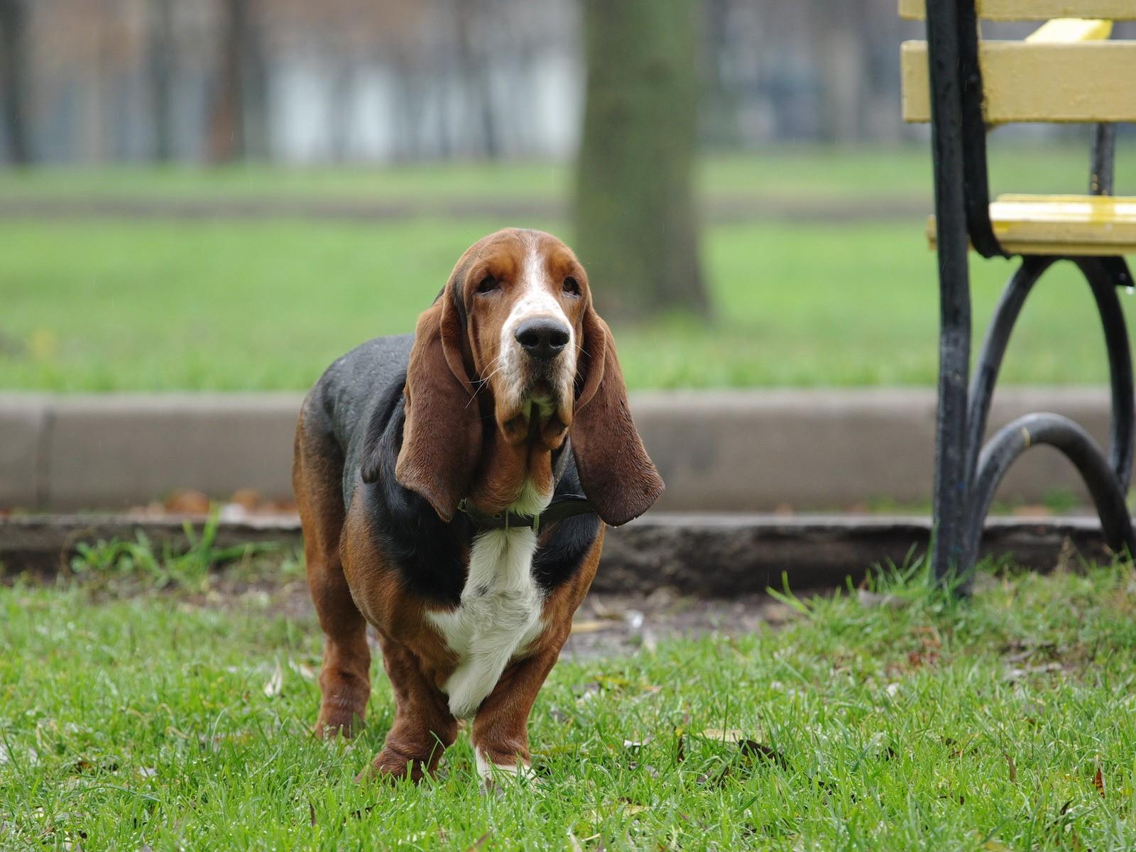 Wallpaper Sad dog breed Basset Hound on the green grass