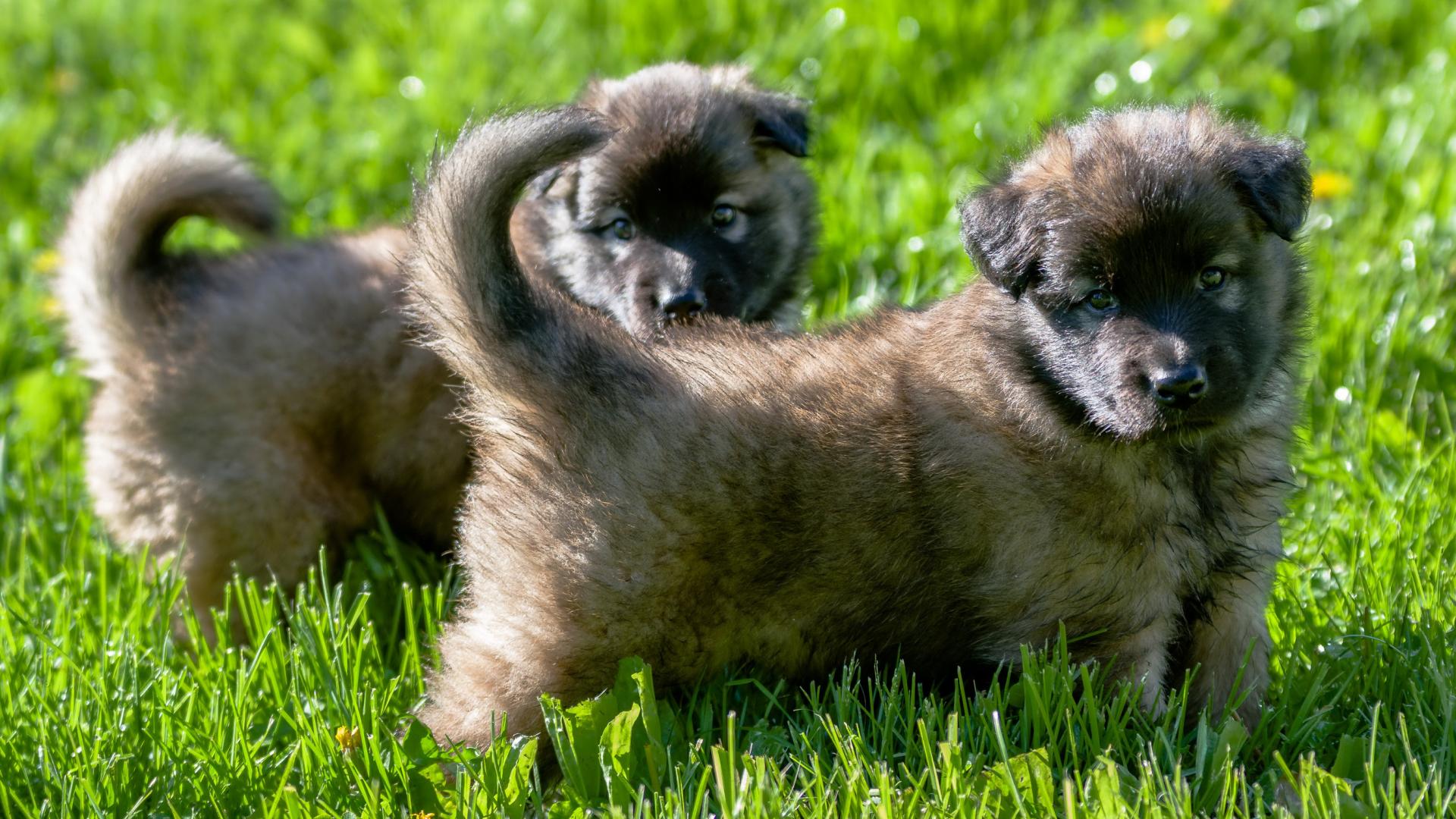 Wallpaper Two cute German Shepherd puppy on green grass