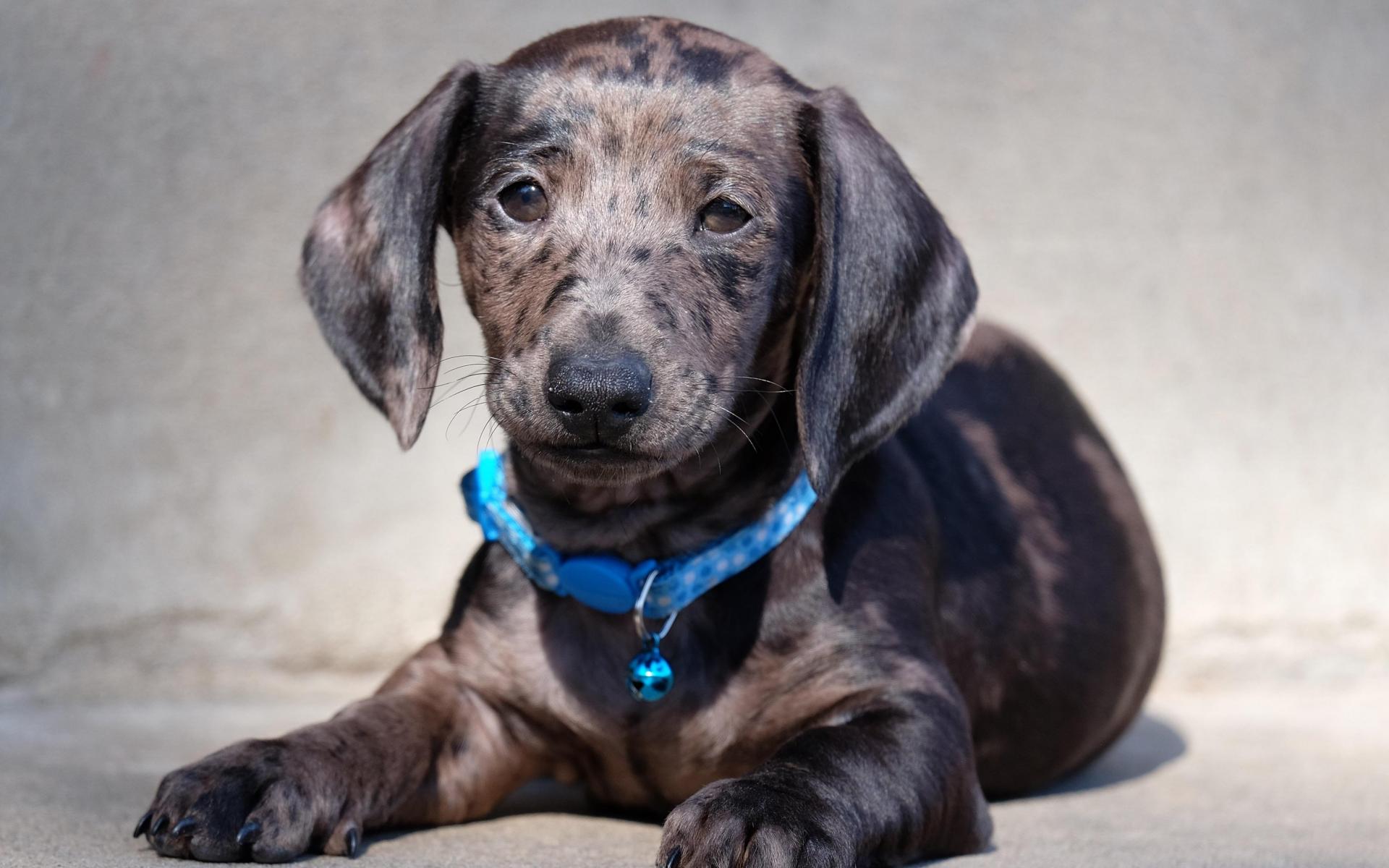 Wallpaper A sad puppy of a dachshund with a blue collar