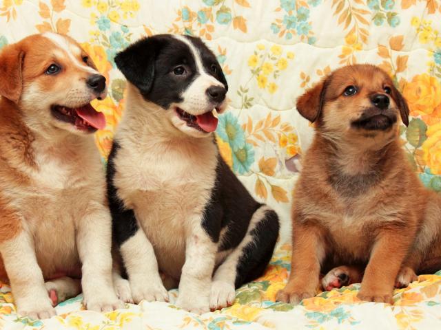 Wallpaper Three curious little puppies