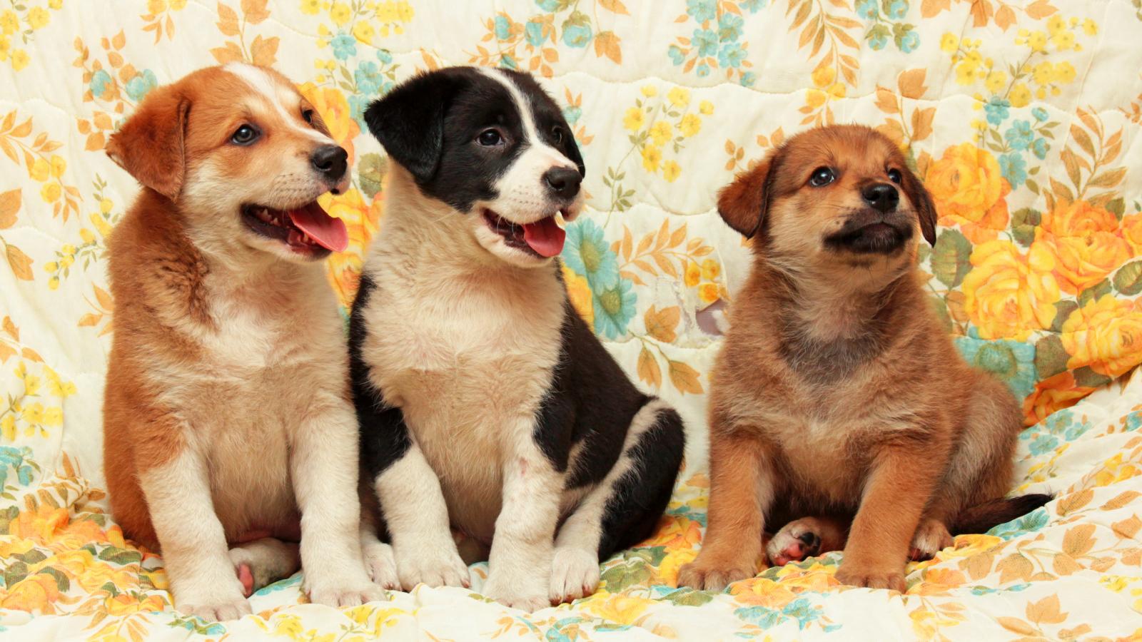 Wallpaper Three curious little puppies