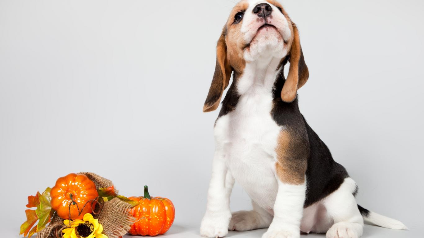 Wallpaper Little puppy beagle posing on a gray background