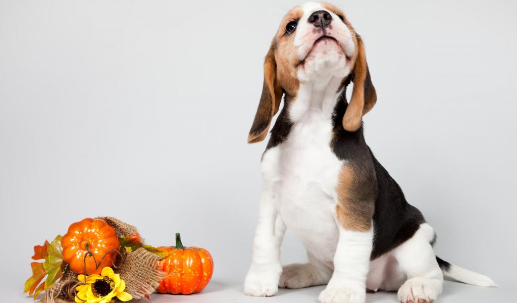 Wallpaper Little puppy beagle posing on a gray background