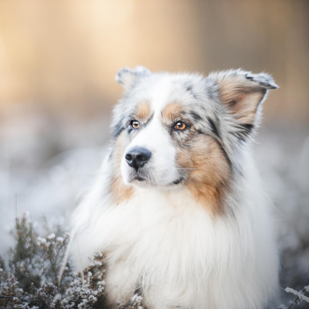 Wallpaper Australian Shepherd with a serious snout lies on the ground