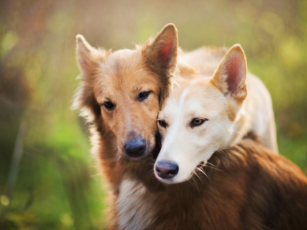 Wallpaper Two red dogs hugging each other