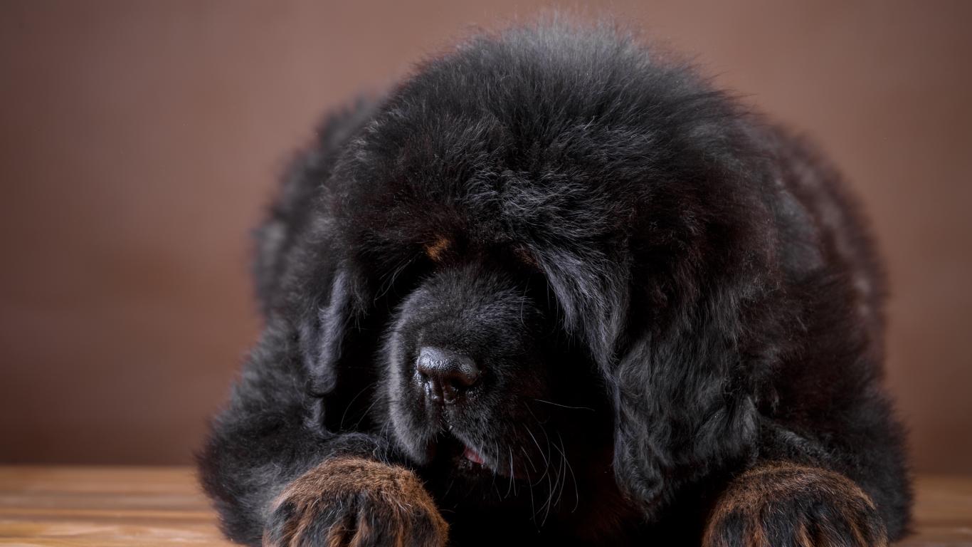Wallpaper Large fluffy black puppy of the Tibetan mastiff