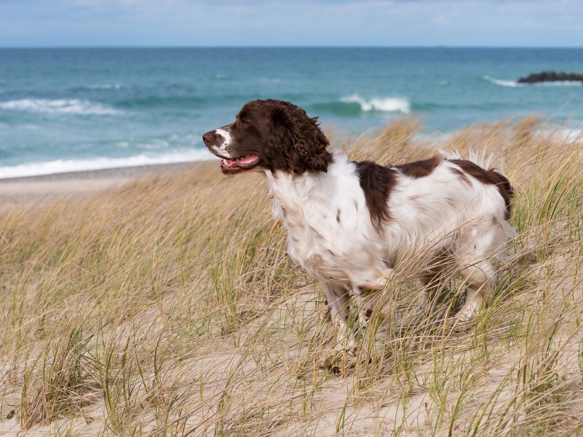 Wallpaper Cocker Spaniel is standing on the grass at the seaside
