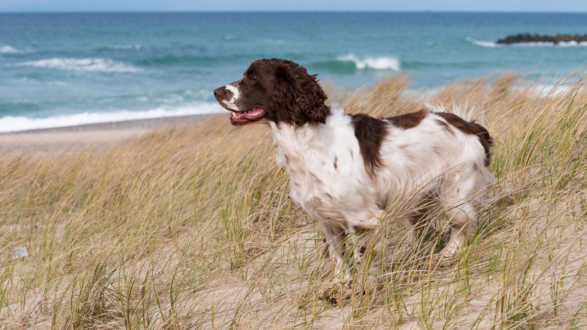 Wallpaper Cocker Spaniel is standing on the grass at the seaside