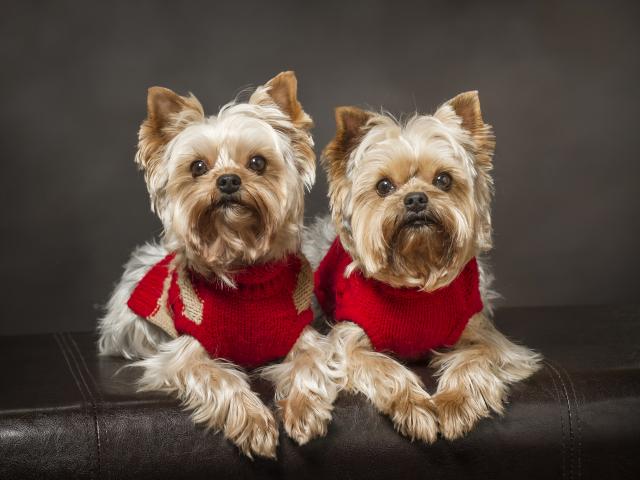 Wallpaper Two Yorkshire terriers in red sweaters