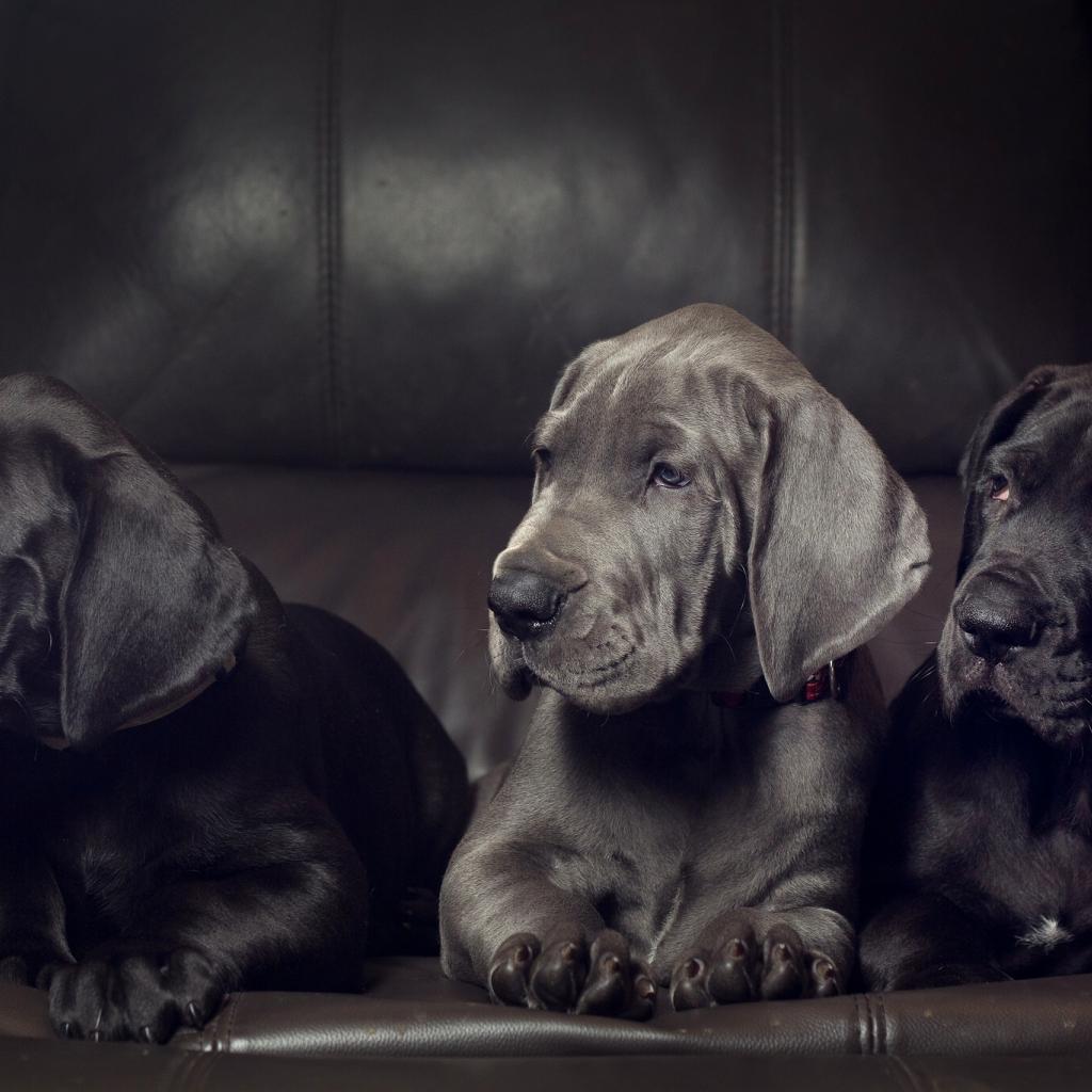Wallpaper Three cute black puppies of the Great Dane