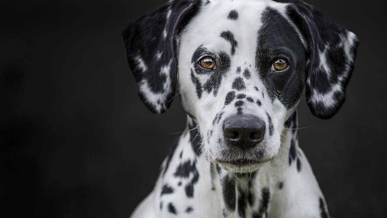 Wallpaper Muzzle of a large beautiful Dalmatian on a black background
