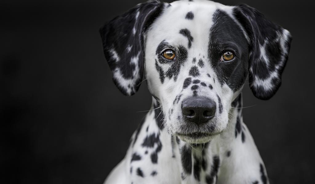 Wallpaper Muzzle of a large beautiful Dalmatian on a black background